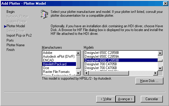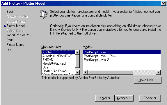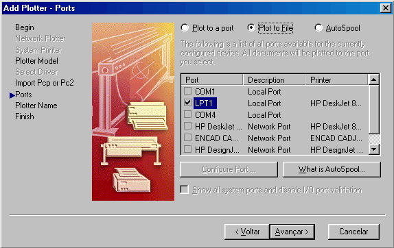 de dialogo Plotters, clique no icone Add-A-Plotter
